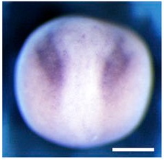 lpar2 (lysophosphatidic acid receptor 2) gene expression in Xenopus laevis embryo, assayed via in situ hybridization, NF stage 16, dorsal view, anterior up. This image is extracted from figure published in: Kuriyama S et al. (2014), Image published in: Kuriyama S et al. (2014) © 2014 Kuriyama et al. Creative Commons Attribution-NonCommercial-ShareAlike license
