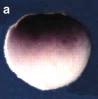 pias4 (protein inhibitor of activated STAT, 4) gene expression in Xenopus laevis embryo, assayed via in situ hybridization, NF stage 6.5 , lateral view, animal pole up. This image is extracted from figure published in: Daniels M et al. (2004), Image published in: Daniels M et al. (2004) Copyright © 2004. Image reproduced with permission of the Publisher and the copyright holder. This is an Open Access article distributed under the terms of the Creative Commons Attribution License.
