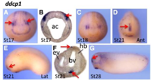 (A-C) ddcp1 was expressed along the edge of neural plate. Notably, two stronger