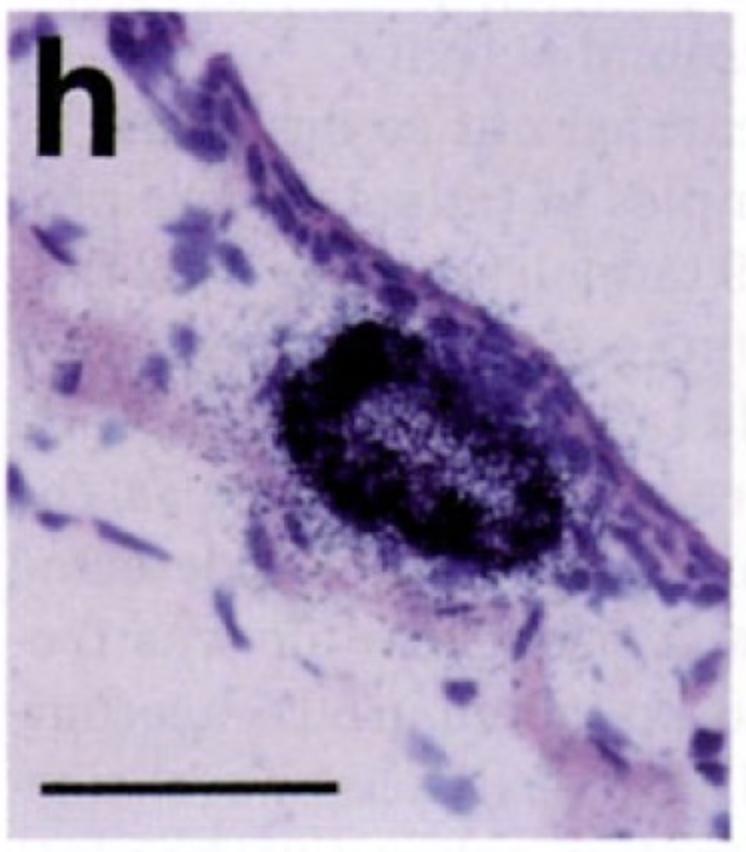 magainins (magainins) gene expression in longitudinal section of Xenopus laevis tadpole skin of the mid-dorsal region, NF stage 66. This image is extracted from figure published in: Reilly DS et al. (1994) Copyright © 1994. Image reproduced with permission of the Publisher, Elsevier B. V.