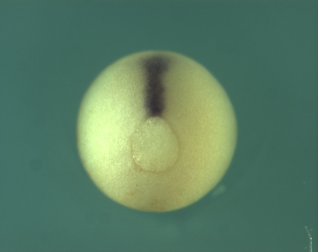 admp (anti-dorsalizing morphogenic protein) Xgene expression in Xenopus laevis embryo, assayed via in situ hybridization, NF stage 12, vegetal/blastoporal view, dorsal up. Copyright © XDB3