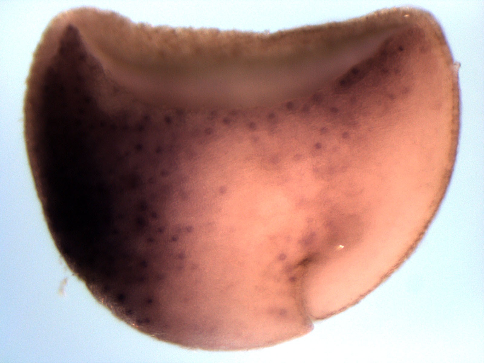 ventx1.2 (VENT homeobox 1, gene 2) expressed in Xenopus laevis embryo via in situ hybridization, stage 12.5.