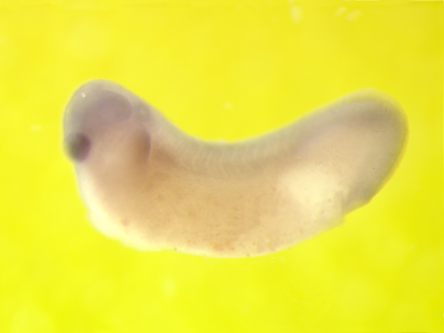 slc10a7 (solute carrier family 10 (sodium/bile acid cotransporter family), member 7) expressed in Xenopus laevis embryo via in situ hybridization, stage 29 and 30, lateral view, anterior left.