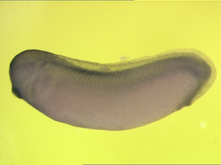 ccdc109a gene expression in Xenopus laevis embryo via in situ hybridization, NF stage 28, lateral view, anterior left.