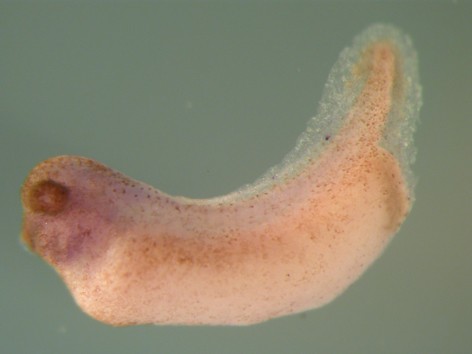 calhm2 (calcium homeostasis modulator 2) gene expression in Xenopus tropicalis embryo, assayed via in situ hybridization, NF stage 33 & 34, lateral view, anterior left, dorsal up Copyright © Smith Lab, James C Smith Image published in: Smith ISH & MO Screen