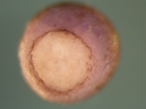 sccpdh (saccharopine dehydrogenase (putative)) gene expression in Xenopus laevis embryo, assayed via in situ hybridization, NF stage 10.5, blastoporal view, dorsal up.