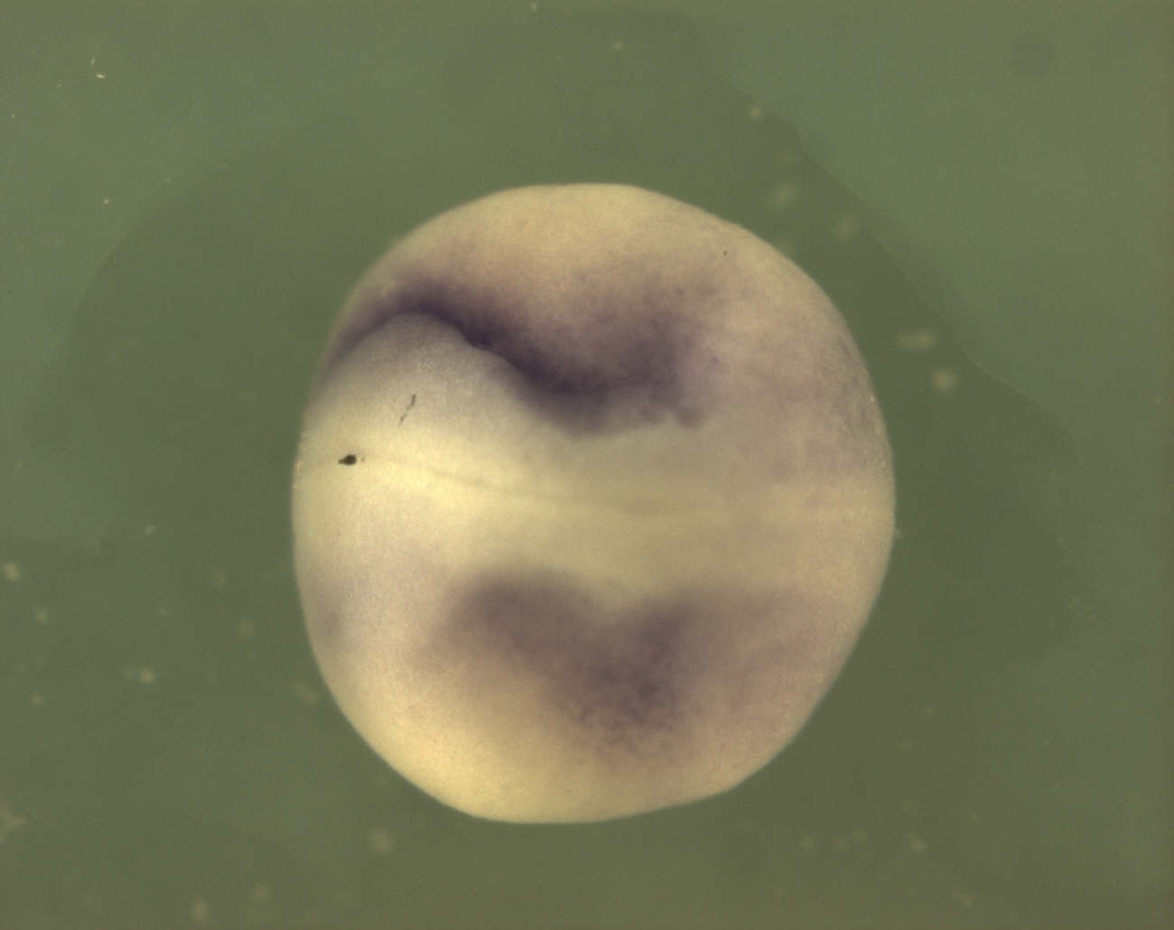 gba1 (glucosylceramidase beta 1) gene expression in Xenopus laevis embryo, assayed via in situ hybridization, NF stage 15, dorsal view, anterior left. Copyright © XDB3, Naoto Ueno Image published in: NIBB XDB3 (Probe Pages), NIBB XDB3 Images
