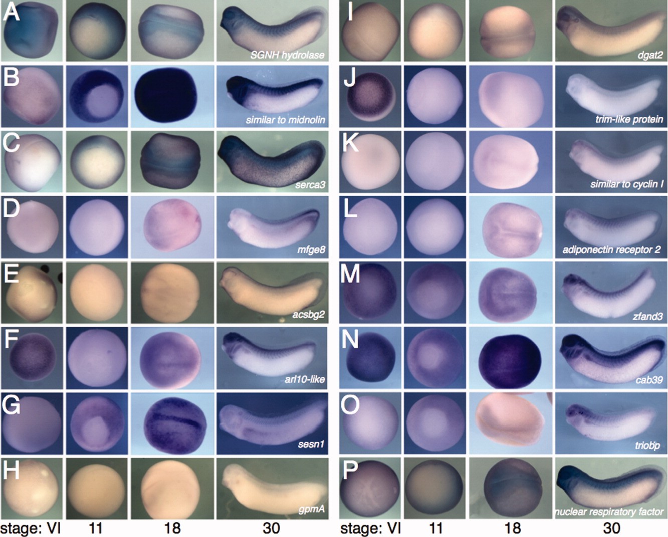 midn.Lmidn-a, midn-b, midnolinX. laevisThroughout unfertilized egg stagevegetal