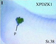 pdzk1 (PDZ domain containing 1) gene expression in Xenopus laevis embryo, assayed via in situ hybridization, NF stage 38, lateral view, anterior left, dorsal up, trunk section only. This image is extracted from figure published in: Nichane M et al. (2006), Image published in: Nichane M et al. (2006) Copyright © 2006. Image reproduced with permission of the Publisher, Elsevier B. V.