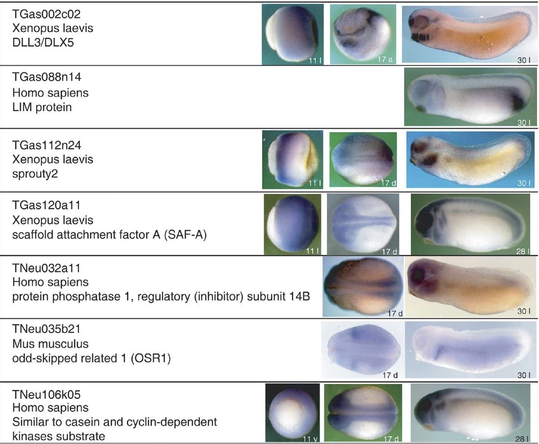 | nucks1 | JC7, nucks | X. tropicalis | Throughout NF stage 17 | cranial neural crest neural plate pre-chordal neural plate chordal neural plate