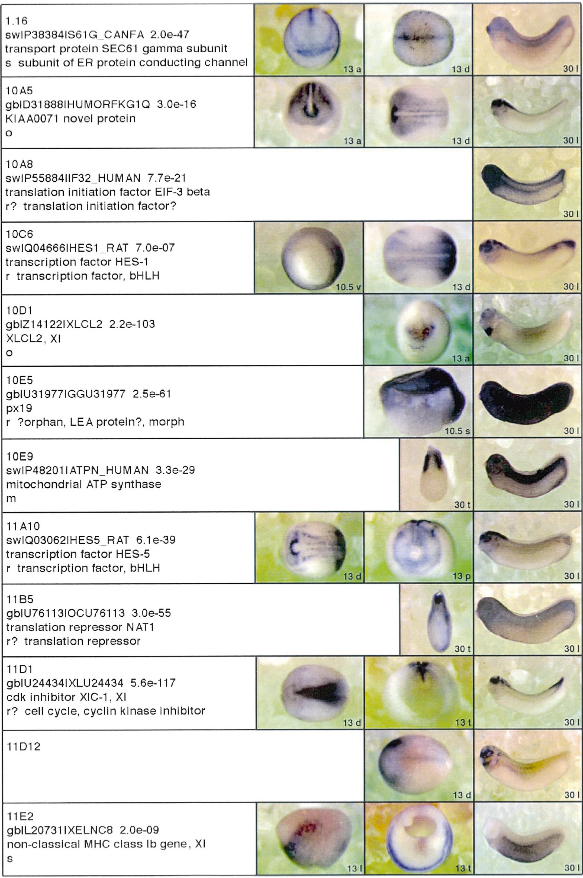 gene; r, developmental regulator gene; r?, housekeeping regulator gene; s, structural gene; Xl, known Xenopus gene; +, GRAIL1 good coding potential; ++,