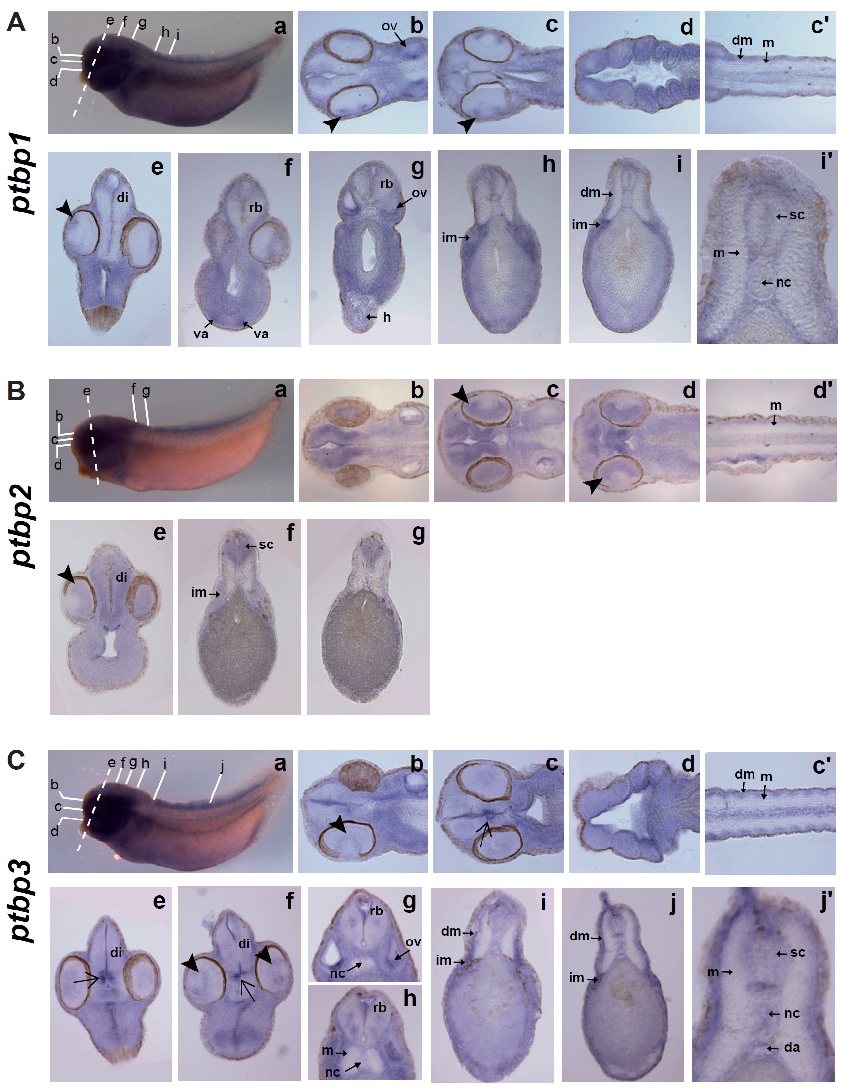 late tailbud embryos. (A) ptbp1 (a) lateral