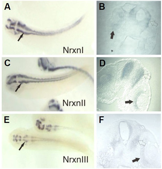 showing whole embryo (A) and an anterior neural section (B). Nrxn I is