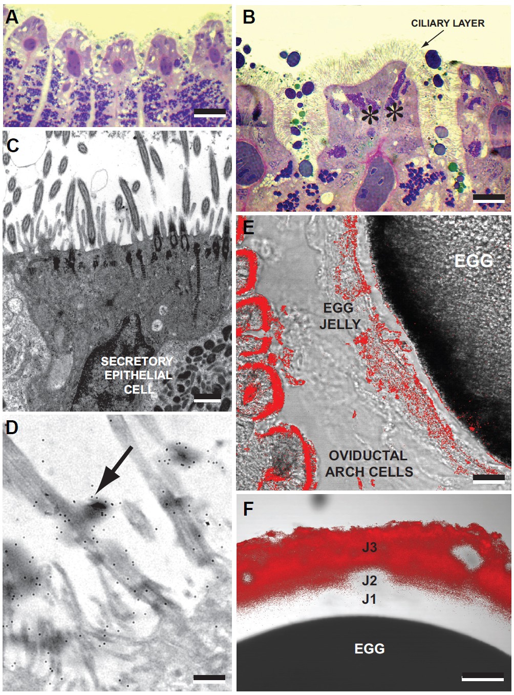 ciliary border are mixed with jelly and �brushed� onto the egg. Bar, 10 μm. (F) In the freshly