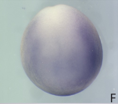 has1 (hyaluronan synthase 1) gene expression in a Xenopus laevis embryo, NF stage 14, as assayed by in situ hybridization. Anterior view: dorsal up. This image is extracted from figure published in: Chalmers AD et al. (2006), Image published in: Chalmers AD et al. (2006) Copyright © 2006. Image reproduced with permission of the Publisher, Elsevier B. V.