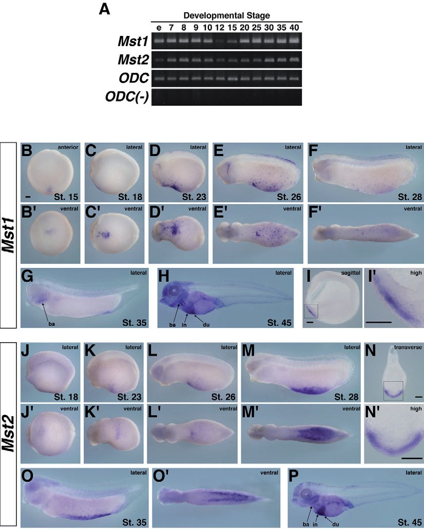 Fig. 1. Expression pattern of Mst1 and Mst2 in Xenopus tropicalis