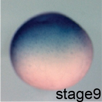 ndp ( Norrie disease (pseudoglioma) ) gene expression in Xenopus laevis embryos, NF stage 9, as assayed by in situ hybridization, side view, animal up.