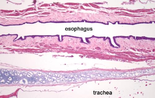 Definition: "Tube that connects the pharynx to the stomach. At NF stage 57 it is a straight tube, round in cross section, and starting from the pharynx runs backward along the dorsal side of the abdominal cavity. Its lining consists of a columnar glandular epithelium with mucus secreting cells. It is thrown into longitudinal folds."