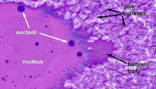 Definition: "A prominent mass in the cytoplasm of previtellogenic oocytes. The cloud contains both mitochondria and electron-dense granulofibrillar material (GFM) and is the source of germinal granule material."