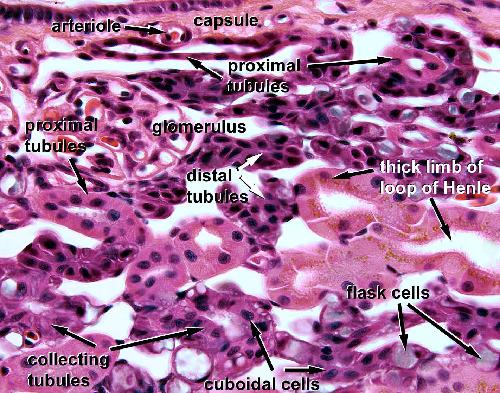 Definition: "Either of the pair of structures lying on either side of the dorsal aorta in which fluid balance is regulated and waste is excreted out in the form of urine. Amphibians (and fish) have a early kidney, the pronephros/pronephric kidney, which consitsts of a single nephron attached to a pronephric duct, which in turn is linked to the cloaca. The pronephros functions as primary filtration system for the embryo while the mesonephric kidney develops. The pronephros starts to degenerate at NF stage 53. The mesonephros starts to form at NF stage 39 and contuinues to grow into the adult kidney."