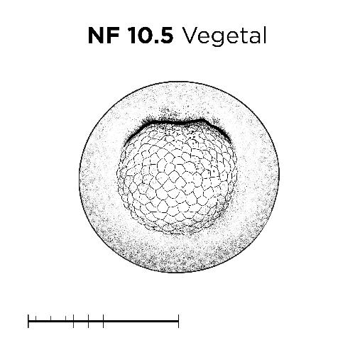 XAO ID: 1000031 Definition: "Nieuwkoop and Faber stage 10.5, corresponding to an embryo of age 11 hr at 22-24 Celsius and having the following external morphological criteria: Crescent-shaped blastopore stage. Blastopore groove angular. Vegetal field slightly decreased in size, ventral border of future yolk plug indicated by pigment contraction. Length: 1.4 - 1.5 mm." |