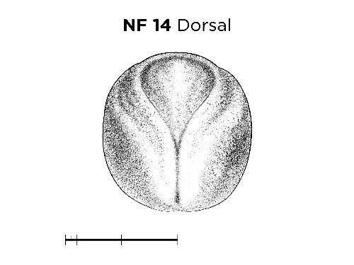 XAO ID: 1000024 Definition: "Nieuwkoop and Faber stage 14, corresponding to an embryo of age 16 hr 15 min at 22-24 Celsius and having the following external morphological criteria: Neural plate stage. Cerebral part of neural plate bent downwards, with median elevation at rostral end of median groove. Initial elevation of neural folds, most pronounced in future nucal region. Blastopore always slit-shaped. Length: 1.5 - 1.6 mm." |