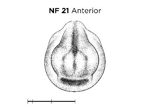 Definition: "Nieuwkoop and Faber stage 21, corresponding to an embryo of age 22 hr 30 min at 22-24 Celsius and having the following external morphological criteria: Suture of neural tube completely closed. Delimitation of frontal field by pigment lines. Primary eye vesicles showing through in the form of two separate, obliquely placed oval spots; beginning of protrusion of eyes. Lateral outline of embryo just becoming concave, ventral outline flat. Length: 1.9 - 2.0 mm."