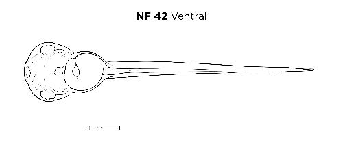 XAO ID: 1000054 Definition: "Nieuwkoop and Faber stage 42, corresponding to an embryo of age 3 days, 8 hr at 22-24 Celsius and having the following external morphological criteria: Beginning of formation of opercular folds. Torsion of intestine about 90 degrees; proctodeum connected with yolk mass by short horizontal intestinal tube. Length: 7.0 - 7.7 mm." |