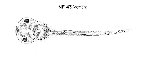 XAO ID: 1000055 Definition: "Nieuwkoop and Faber stage 43, corresponding to an embryo of age 3 days, 15 hr at 22-24 Celsius and having the following external morphological criteria: Lateral line system becoming visible externally. Cement gland losing its pigment. Torsion of intestine about 180 degrees; proctodeum narrower, arched or S-shaped. Length: 7.5 - 8.3 mm." |
