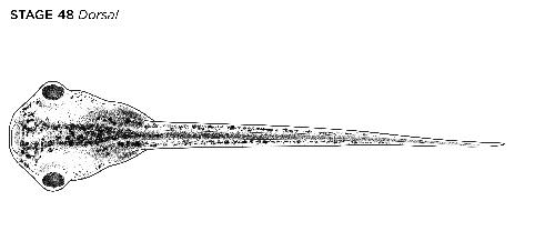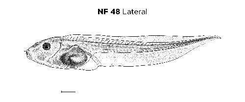 XAO ID: 1000060 Definition: "Nieuwkoop and Faber stage 48, corresponding to a tadpole of age 7.5 days at 22-24 Celsius and having the following external morphological criteria: Beginning of pigmentation around n. acusticus. Forelimb bud visible for the first time. Shining gold-coloured abdomen. Hindlimb bud semicircular in lateral aspect. Length: 14 - 17 mm." |