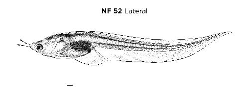 XAO ID: 1000064 Definition: "Nieuwkoop and Faber stage 52, corresponding to a tadpole of age about 21 days at 22-24 Celsius and having the following external morphological criteria: Forelimb bud irregularly conical. Hindlimb bud showing first indication of ankle constriction and first sign of flattening of foot. Length: 42 - 56 mm." |