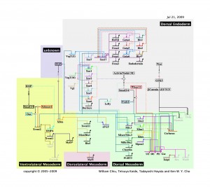 Gene Regulatory Networks Regulating Endoderm Development A major unanswered question in biology is how differentiation of the myriad cell types of the adult body is hardwired in the genome. Using the frog as a model system, our goal is to elucidate the mechanisms controlling endoderm formation by combining experimental (e.g., ChIPseq and RNAseq) and computational approaches. Production of a thorough endodermal gene regulatory network in frog will provide a useful framework for prediction, that is applicable to early mouse and human embryogenesis, thereby offering valuable knowledge to the broader scientific community for reprogramming stem cells along endodermal cell lineages. Gene regulatory Network – Emergence of the primary germ layers is among the earliest events of cell specification in animal development. Understanding the mechanisms of germ layer formation and subsequent patterning has implications for the treatment of human disease. Our goal is to describe the underlying logic of genetic programs regulating vertebrate mesendoderm development. Traditionally, Gene Regulatory Network (GRN)s have been constructed using a combination of mapping of transcription factor (TF) binding sites, physical binding of TFs to these sites, and demonstration of the importance of both to gene expression output. This approach is both labor and time intensive. Another approach, utilizing a combination of computational methods with extensive perturbation analysis, can produce a GRN that, while lacking in the details of direct physical interactions, has the advantage of rapidly generating a global perspective. We generated large transcriptome profiles from tightly spaced stages of early Xenopus embryogenesis to permit modeling of the dynamics of changes in transcript levels. These data are incorporated along with morpholino knockdown studies to perturb relevant gene expression. Computational modeling has been used to identify critical core networks regulating endodermal development.Current Members
