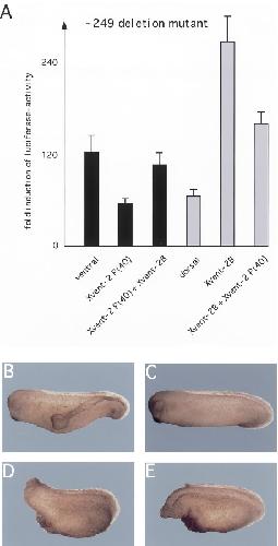 Cooperative interaction of Xvent-2 and GATA-2 in the activation of the ventral homeobox gene Xvent-1B. , Friedle H, Knöchel W ., J Biol Chem. June 28, 2002; 277 (26): 23872-81.