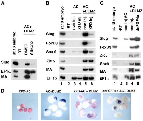 Neural crest induction by paraxial mesoderm in Xenopus embryos requires FGF signals., Monsoro-Burq AH, Fletcher RB, Harland RM., Development. July 1, 2003; 130 (14): 3111-24.