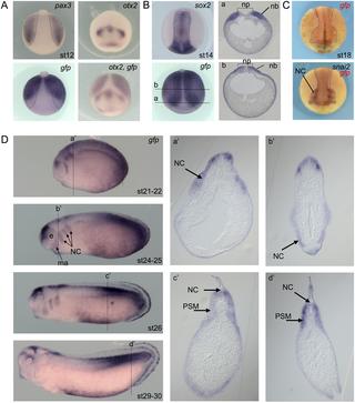 Pax3 and Zic1 trigger the early neural crest gene regulatory network by the direct activation of multiple key neural crest specifiers., Plouhinec JL, Roche DD, Pegoraro C, Figueiredo AL, Maczkowiak F, Brunet LJ, Milet C, Vert JP, Pollet N, Harland RM, Monsoro-Burq AH., Dev Biol. February 15, 2014; 386 (2): 461-72.