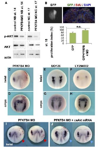 PFKFB4 control of AKT signaling is essential for premigratory and migratory neural crest formation., Figueiredo AL, Maczkowiak F, Borday C, Pla P, Sittewelle M, Pegoraro C, Monsoro-Burq AH., Development. November 15, 2017; 144 (22): 4183-4194.