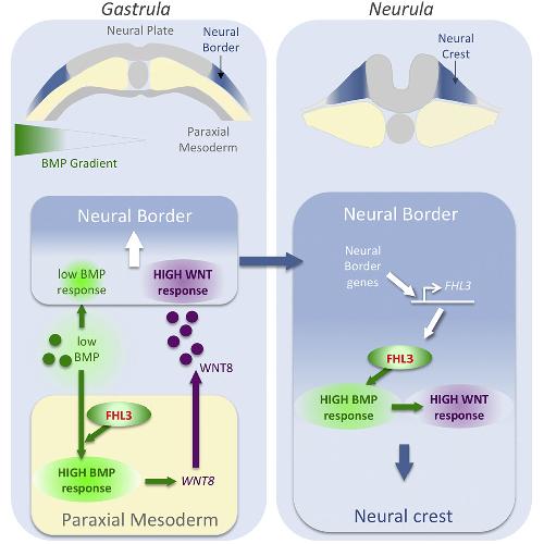 BMP signaling is enhanced intracellularly by FHL3 controlling WNT-dependent spatiotemporal emergence of the neural crest., Alkobtawi M, Pla P, Monsoro-Burq AH., Cell Rep. June 22, 2021; 35 (12): 109289.