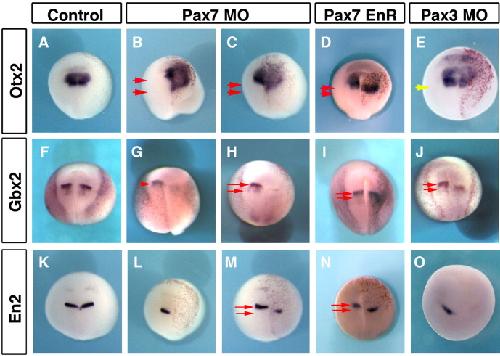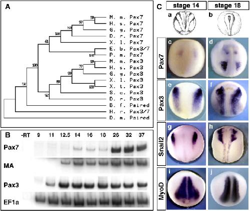The Pax3 and Pax7 paralogs cooperate in neural and neural crest patterning using distinct molecular mechanisms, in Xenopus laevis embryos., Maczkowiak F, Matéos S, Wang E, Roche D, Harland R, Monsoro-Burq AH., Dev Biol. April 15, 2010; 340 (2): 381-96.