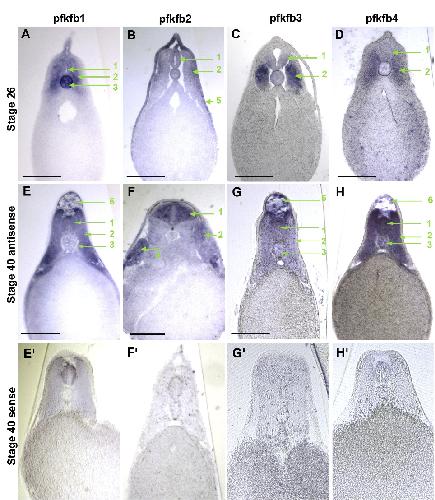 Pfkfb (6-phosphofructo-2-kinase/fructose-2,6-bisphosphatase) isoforms display a tissue-specific and dynamic expression during Xenopus laevis development., Pegoraro C, Maczkowiak F, Monsoro-Burq AH., Gene Expr Patterns. October 1, 2013; 13 (7): 203-11.