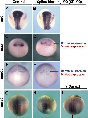 Dazap2 is required for FGF-mediated posterior neural patterning, independent of Wnt and Cdx function., Roche DD, Liu KJ, Harland RM, Monsoro-Burq AH., Dev Biol. September 1, 2009; 333 (1): 26-36.