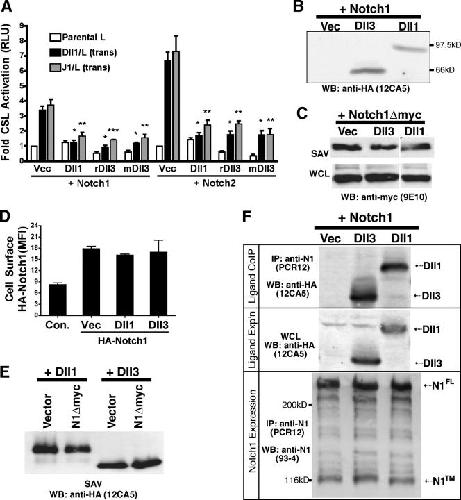 The divergent DSL ligand Dll3 does not activate Notch signaling but cell autonomously attenuates signaling induced by other DSL ligands., Ladi E, Nichols JT, Ge W, Miyamoto A, Yao C, Yang LT, Boulter J, Sun YE, Kintner C, Weinmaster G., J Cell Biol. September 12, 2005; 170 (6): 983-92.