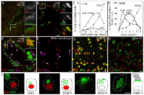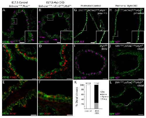 Myb promotes centriole amplification and later steps of the multiciliogenesis program., Tan FE, Vladar EK, Ma L, Fuentealba LC, Hoh R, Espinoza FH, Axelrod JD, Alvarez-Buylla A, Stearns T, Kintner C, Krasnow MA., Development. October 1, 2013; 140 (20): 4277-86.