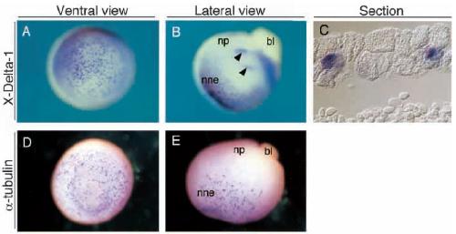 Xenopus neuralized is a ubiquitin ligase that interacts with XDelta1 and regulates Notch signaling., Deblandre GA, Lai EC, Kintner C., Dev Cell. December 1, 2001; 1 (6): 795-806.