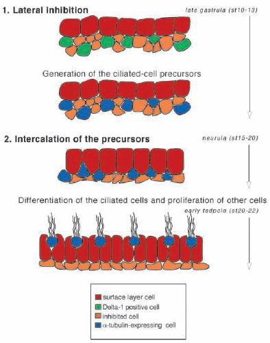 A two-step mechanism generates the spacing pattern of the ciliated cells in the skin of Xenopus embryos., Deblandre GA, Wettstein DA, Koyano-Nakagawa N, Kintner C., Development. November 1, 1999; 126 (21): 4715-28.