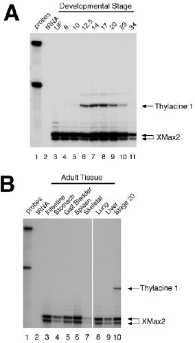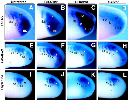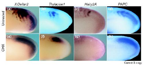 Thylacine 1 is expressed segmentally within the paraxial mesoderm of the Xenopus embryo and interacts with the Notch pathway., Sparrow DB, Jen WC, Kotecha S, Towers N, Kintner C, Mohun TJ., Development. June 1, 1998; 125 (11): 2041-51.