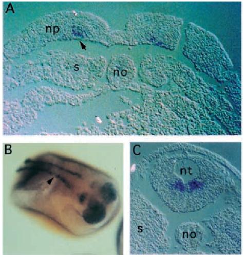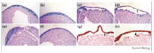 Expression of Pax-3 is initiated in the early neural plate by posteriorizing signals produced by the organizer and by posterior non-axial mesoderm., Bang AG, Papalopulu N, Kintner C, Goulding MD., Development. May 1, 1997; 124 (10): 2075-85.