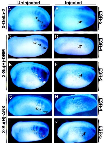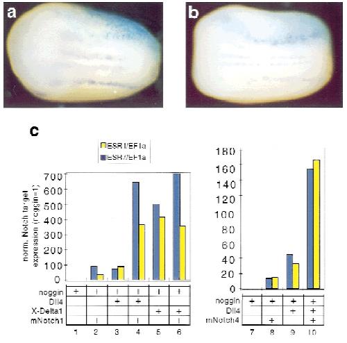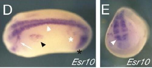 The Notch targets Esr1 and Esr10 are differentially regulated in Xenopus neural precursors., Lamar E, Kintner C., Development. August 1, 2005; 132 (16): 3619-30.