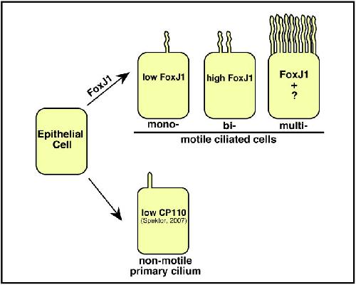 Multicilin promotes centriole assembly and ciliogenesis during multiciliate cell differentiation., Stubbs JL, Vladar EK, Axelrod JD, Kintner C., Nat Cell Biol. January 8, 2012; 14 (2): 140-7.