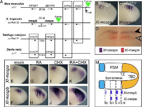 Retinoic acid regulation of the Mesp-Ripply feedback loop during vertebrate segmental patterning., Moreno TA, Jappelli R, Izpisúa Belmonte JC, Kintner C., Dev Biol. March 15, 2008; 315 (2): 317-30.