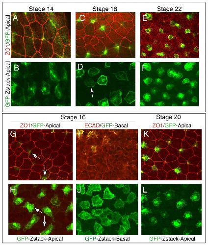Dishevelled controls apical docking and planar polarization of basal bodies in ciliated epithelial cells., Park TJ, Mitchell BJ, Abitua PB, Kintner C, Wallingford JB., Nat Genet. July 1, 2008; 40 (7): 871-9.
